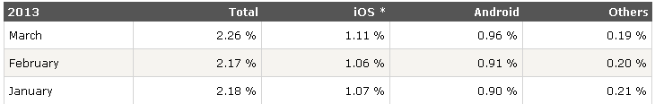 Répartition des OS Mobiles sur la 1ère moitié de mars 2013