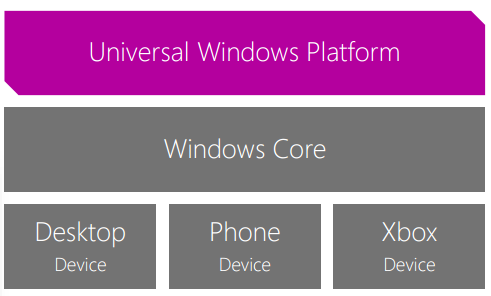 Il faut considérer UWP comme une véritable plateforme physique sauf qu’elle n’est que virtuelle. Si elle présente toujours la même face aux applications (ses API), côté pile elle s’adapte à chaque hardware. En fait c’est le principe de Silverlight mais au niveau d’un OS… SL Apple et SL PC ce n’était pas le même code, mais pour les applications SL c’était la même API. Microsoft pousse très loin ce concept en allant au bout du voyage, le plus loin possible, l’OS lui-même.