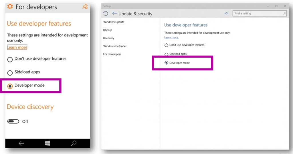 Aujourd’hui il suffit d’aller dans les bons menus d’une machine Windows 10 et dire comme pour Android qu’on débloque le mode développeur. Et c’est tout bon.