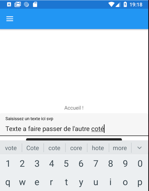 L’image ci-dessus montre la MainPage et sa zone de saisie en cours de frappe. Le clavier de l’émulateur étant resté en Qwerty je n’ai pas mis les accents…